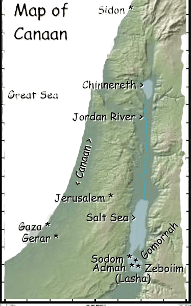 “And the sons of Ham; Cush, and Mizraim, and Phut, and Canaan… And the border of the Canaanites was from Sidon, as thou comest to Gerar, unto Gaza; as thou goest, unto Sodom, and Gomorrah, and Admah, and Zeboim, even unto Lasha.”